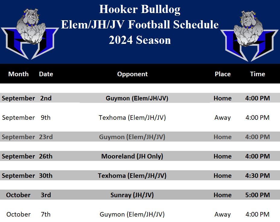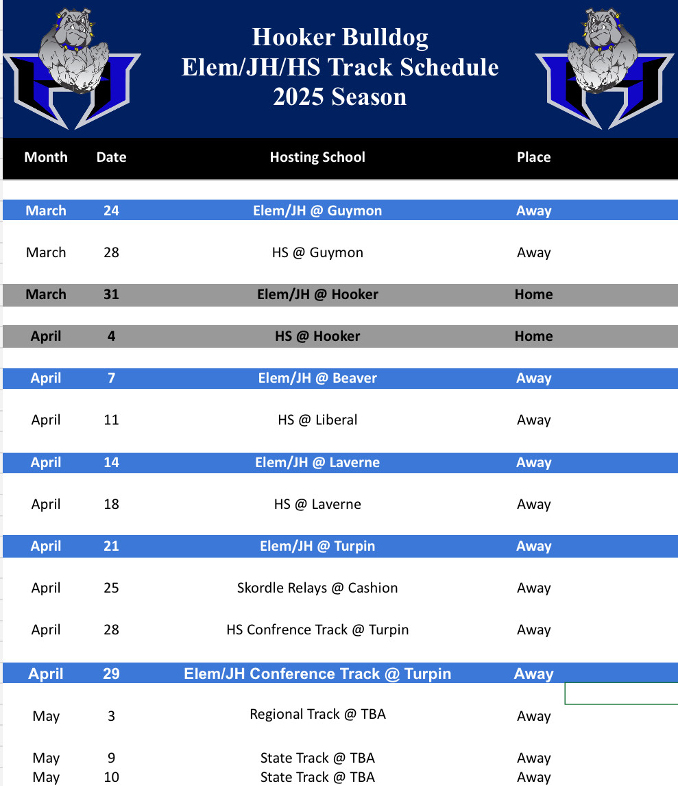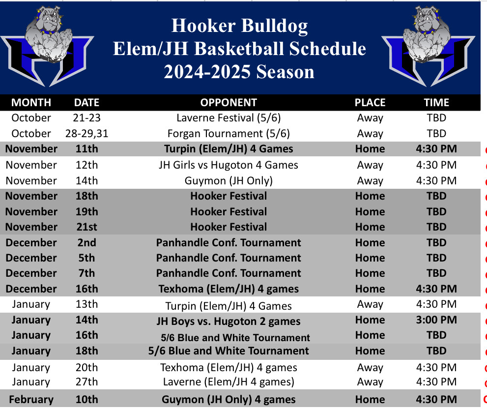 Hooker Elementary 2024-25 Athletics Schedules
